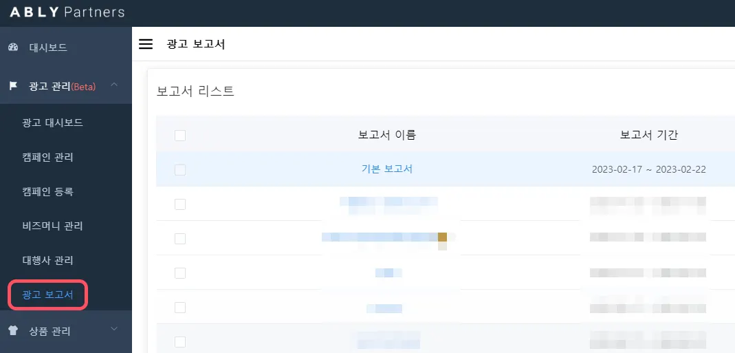 에이블리의 광고 보고서는 다음 2가지로 구분됩니다.