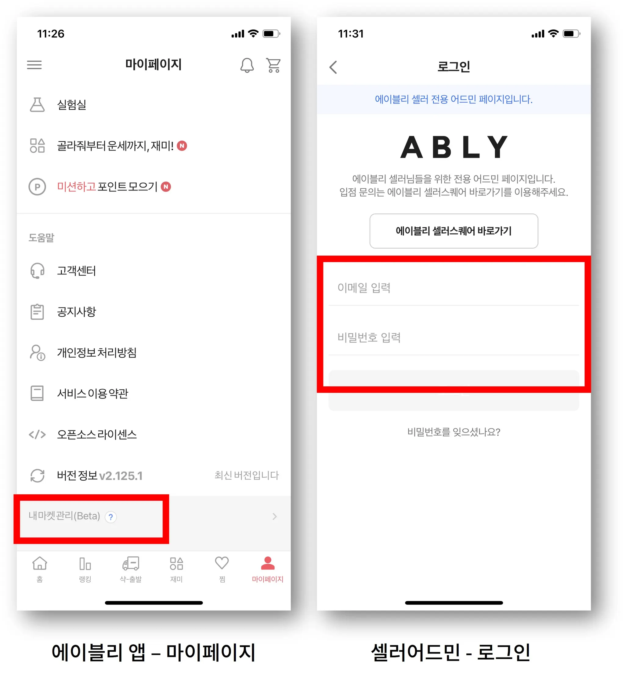 셀러어드민 앱 버전 접속