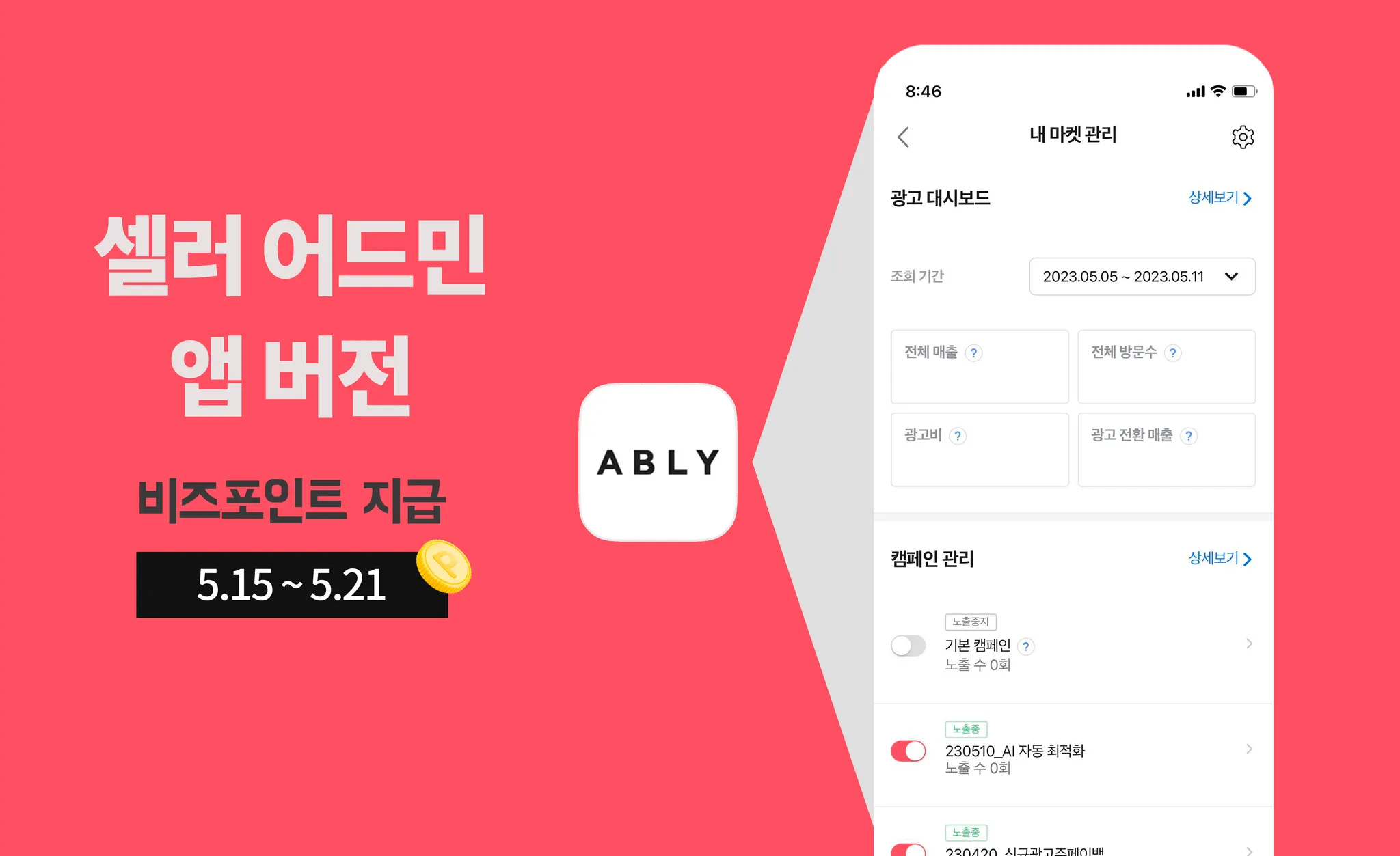 “이제 에이블리 앱을 통해 광고 관리를 할 수 있습니다!”