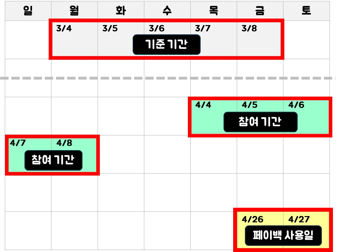 페이백은 4월 26일 금요일 00:30 전후 지급 예정입니다.