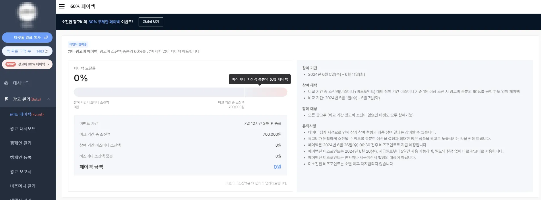 광고비 증분의 60%를 페이백 해드리는 이벤트를 준비했습니다!