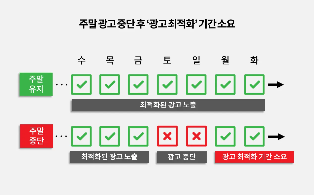 이유3. 주말 동안 광고 OFF는 광고 최적화에 악영향을 줄 수 있어요!